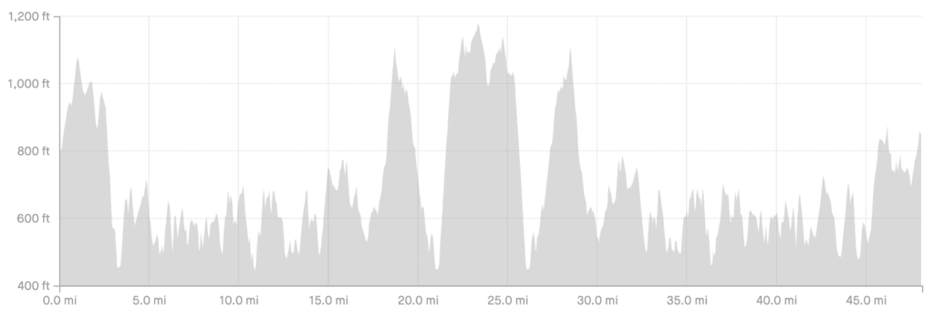 Now a little bit about the course. Despite significant vert, you still need to have a lot of speed and turnover to podium. Mountain legs are good but if all you’ve been doing is tagging 14ers and spending long days out, that’s likely not going to cut it. I’ve heard Sonoma described as death by a thousand cuts; climb after climb after climb, with equally punishing short bomber descents. You really can’t relax on this one. Up down, up down, up down. There are a few extended climbs of 500-750 feet near the turn-around on this out and back course and a cruel 400 foot gut punch at mile 45.